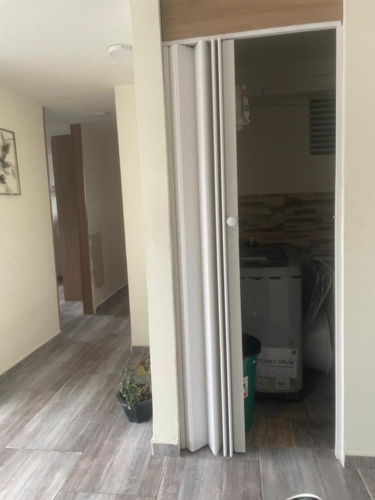 cuenta con una zona de ropas, donde puedes colocar la lavadora y el área de planchado.